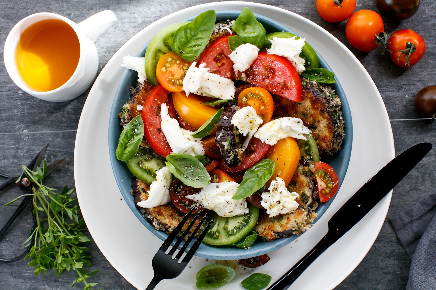Caprese Salad With Fresh Tomatoes Mozzarella Lil Luna